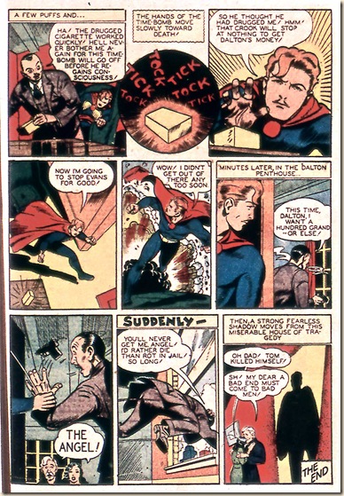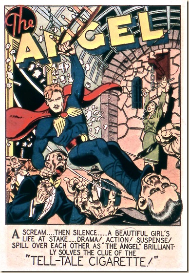 Next, here’s “The Tell-Tale Cigarette,” another ANGEL story, from the next issue of Sub-Mariner (#14, Summer 1944). This story is perhaps a better illustration of the fun Thompson had with this character.